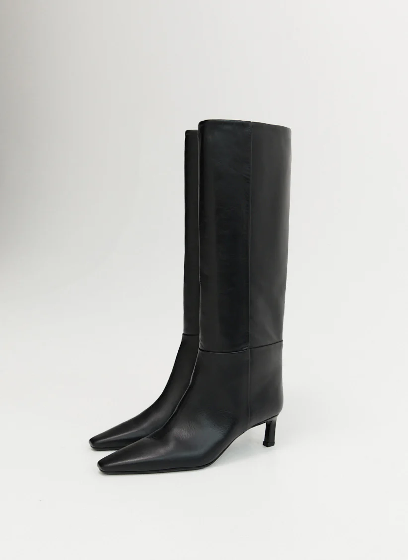 Sleek, refined, and wearable season after season, the Claremont Boot is our latest foray into footwear. Designed exclusively for Elka Collective, the Claremont Boot is a knee high boot style made of smooth calf leather with a classic pointed toe and low stiletto heel. Styled for work or weekend, the classic black colourway of the Claremont Boot is guaranteed to go with all your wardrobe essentials. Elevate a casual skirt and tee look, or pair with an evening dress to give the look a little edge.