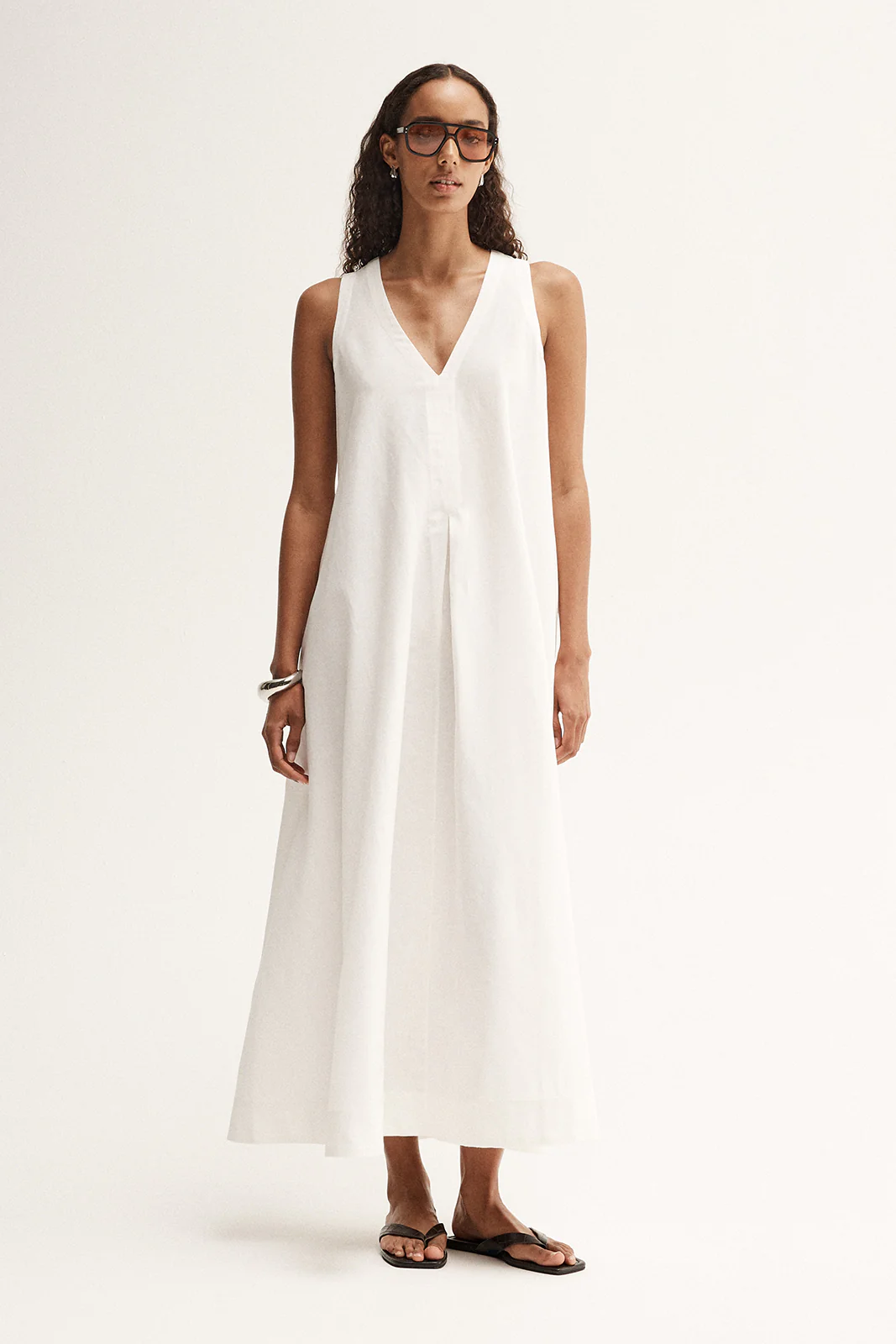 An essential summer style, the Mallory Dress is made of a lightweight linen blend. Cut to a maxi length, this dress features an inverted box pleat at the front to create a soft drape and adjustable tie detail at the waist.