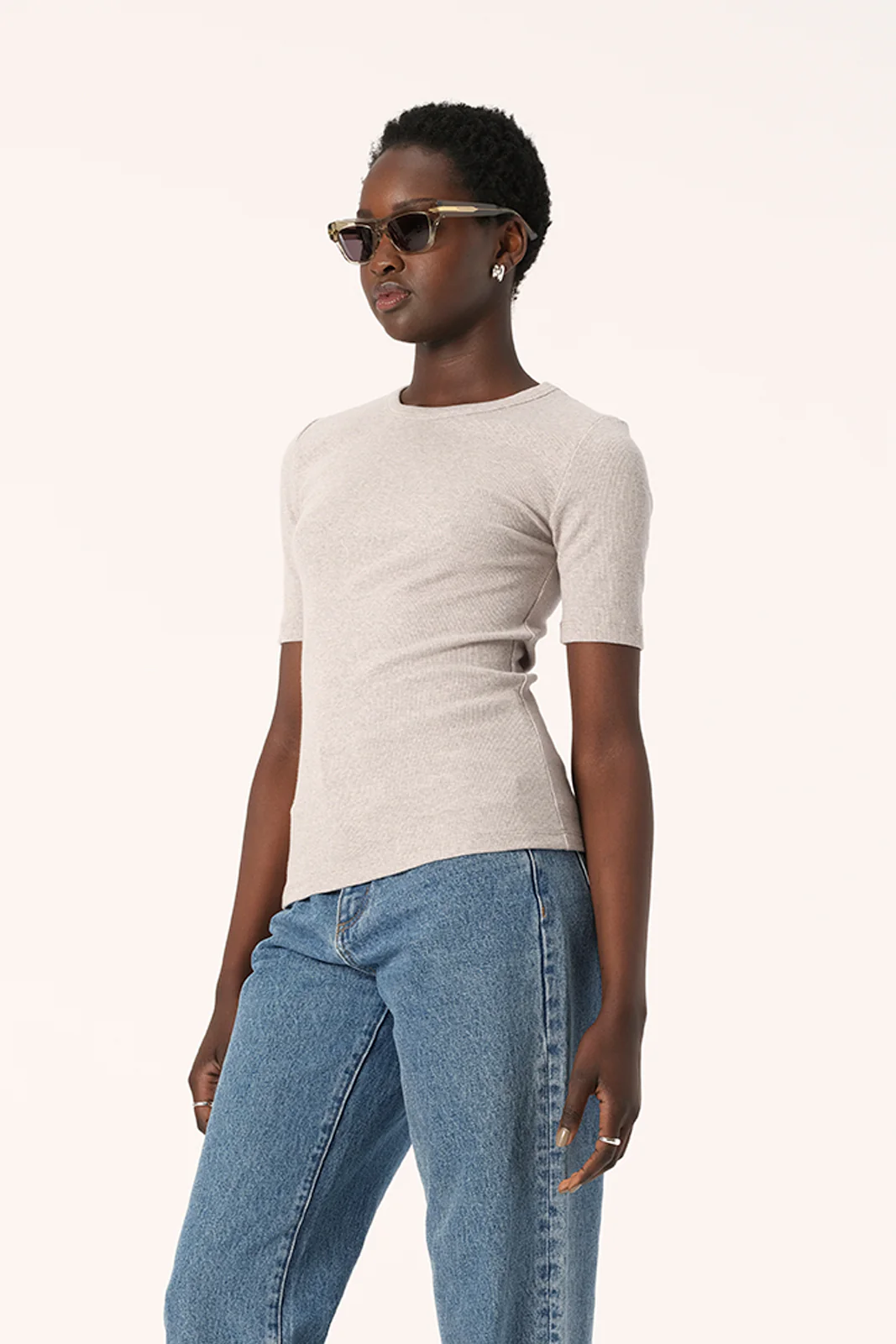 The ultimate everyday wardrobe staple, the Nola Short Sleeve Top in Marble is part of our range of Premium Basics. Made with a soft stretch cotton fabric with a ribbed texture, the Nola Short Sleeve offers a sleek look and supreme comfort. Perfect for layering under knitwear or pairing with classic denim, the Nola Short Sleeve Tee has a crew neckline and fitted silhouette.